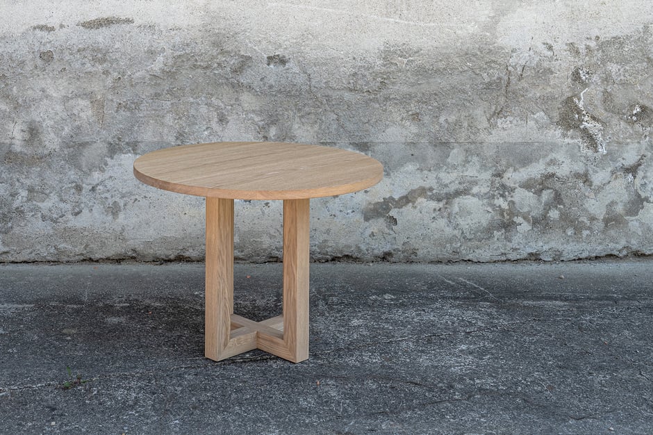 Kleine Ausführung H 740 mm / Blattstärke 35mm / Beinbreite 72 mm / Ø 1000–1300 mm Holz nach Wunsch